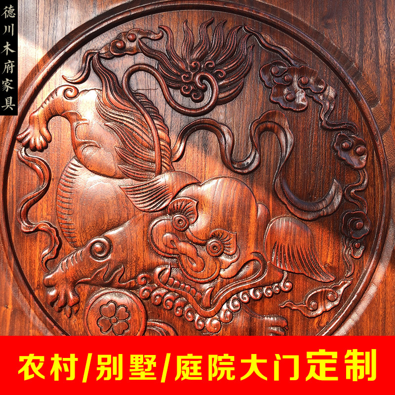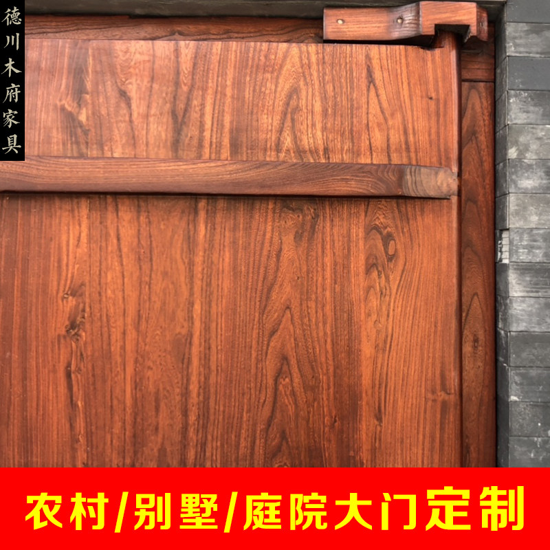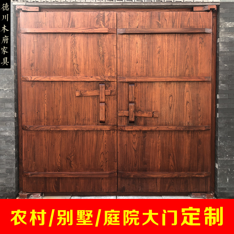 Chinese style courtyard gate solid wood emblem Imitation Ancient Gate Old Elm Wood Gate Heitang Wooden Countryside's Gate of Self-built Room
