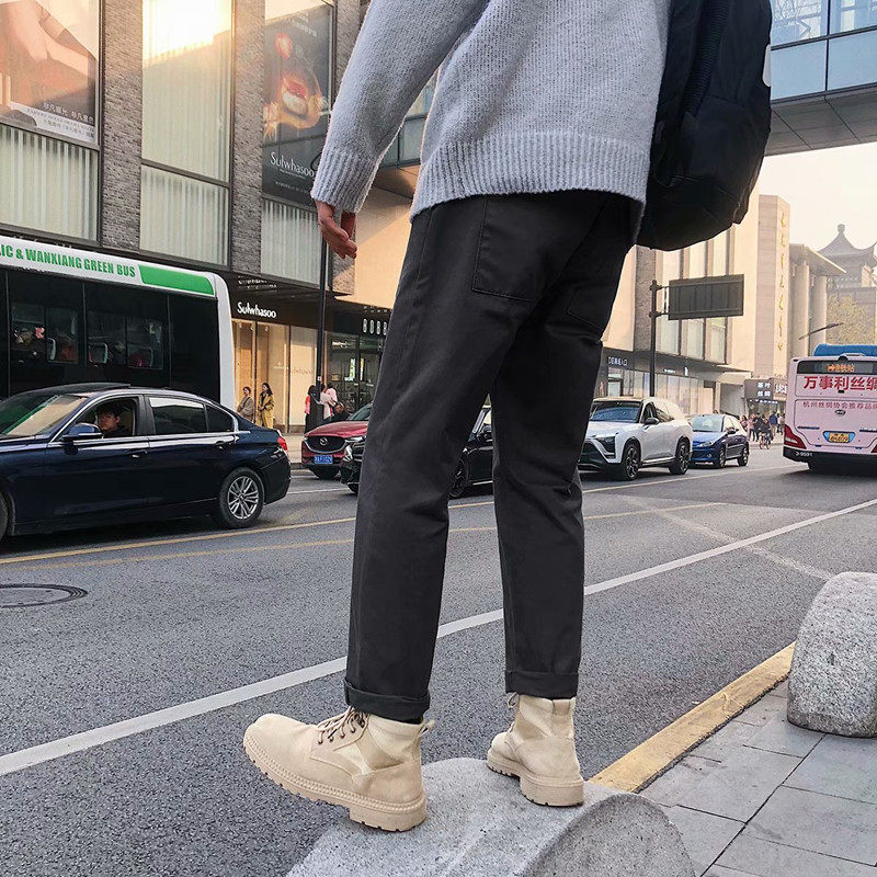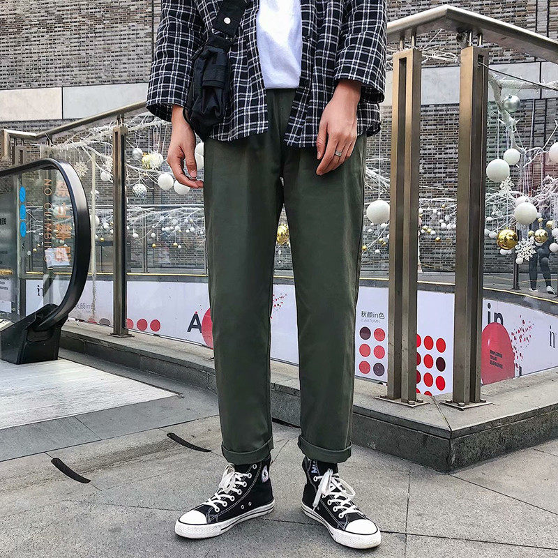 Spring and autumn elastic waist straight casual pants 9 points pants men's loose trendy Korean version men's solid color trousers