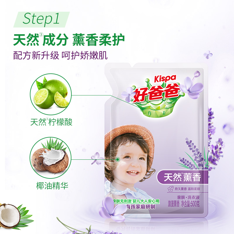 Good dad lavender laundry detergent supplement 500g * 2 bags of long-lasting fragrance deep clean promotional combination