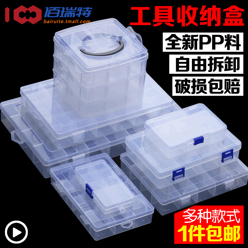 Parts box Plastic transparent tool classification box Electronic components small storage box Detachable combination screw box