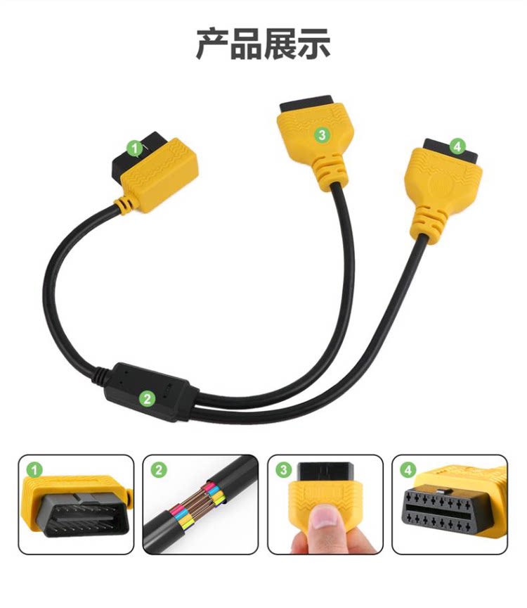 AUTOOL car one point two adapter cable OBD2 extension extension cable 16-pin full core extension cable one to two plugs
