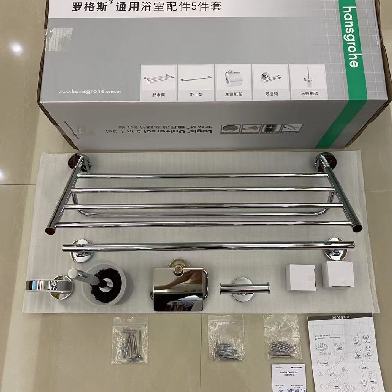 Hansgrohe Bathroom Accessories Bathroom Pendant with five sets towels Towel Rod Bath Towels Hanger Toilet Paper Rack Toilet Brush