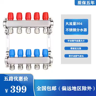 Geothermal floor heating 304 non-magnetic stainless steel water collector valve household 2-8 large flow water separator with blocking flow plug