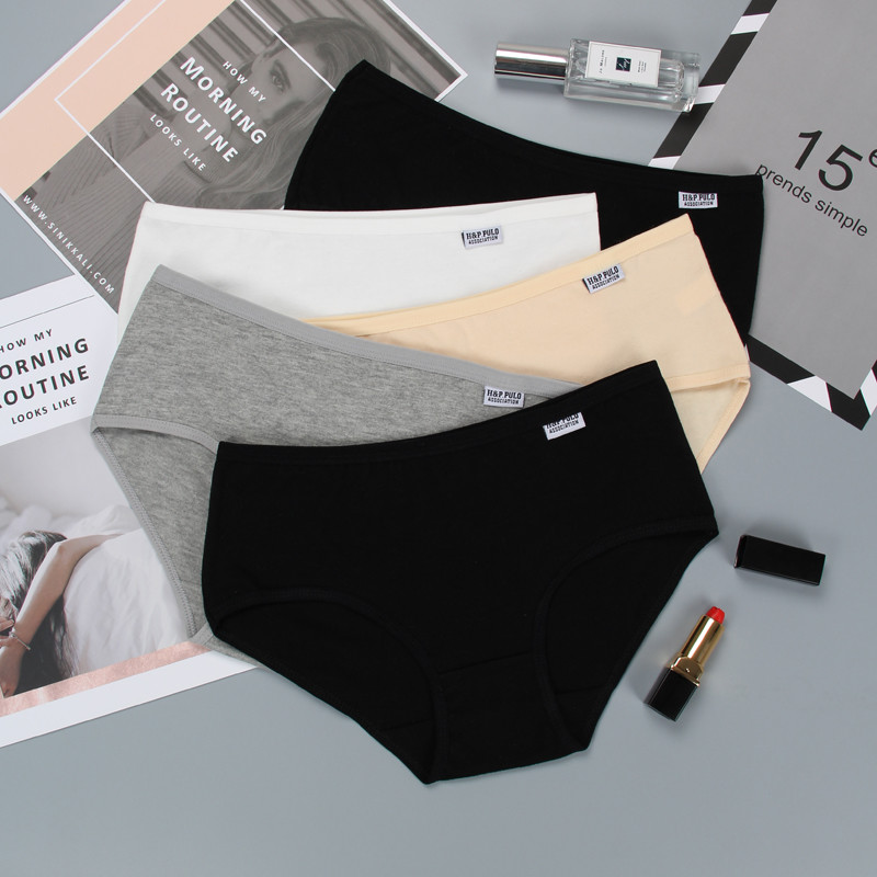 5 girls simple and comfortable pure cotton panties for women students medium and low waist cotton black white skin tone briefs