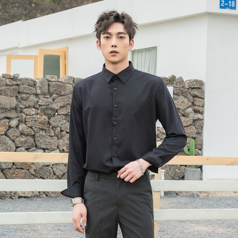 CSO Spring Autumn Pure Color Youth Brief About Long sleeves Men's shirts Body Han Version Light Business Casual Positive Dress White Shirt
