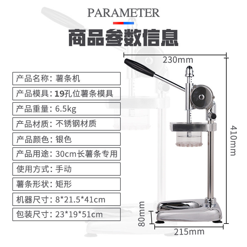 Yuanyang french fries machine 30cm super long french fries squeezer french fries pressing machine commercial stainless steel manual french fries machine