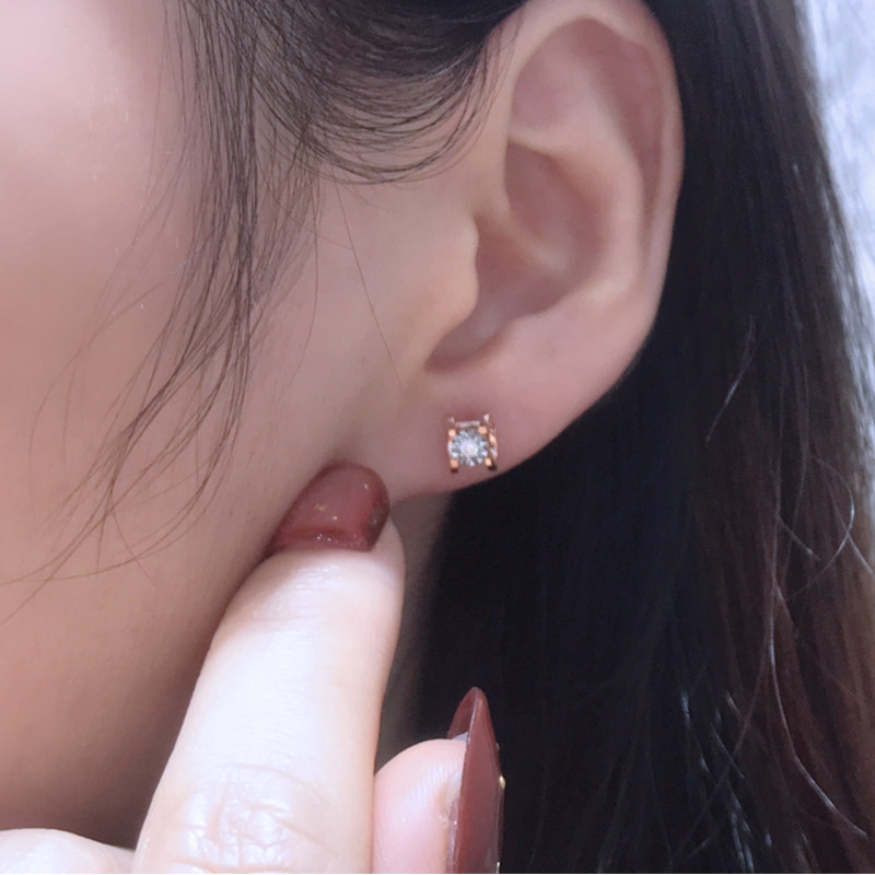 18k Platinum Diamond Earshot Female Real Diamond Rose Gold 10 Single Diamond Ear Accessories Customized Platinum PT950 Bull Head Earrings