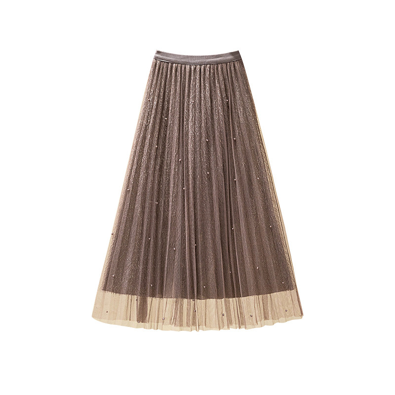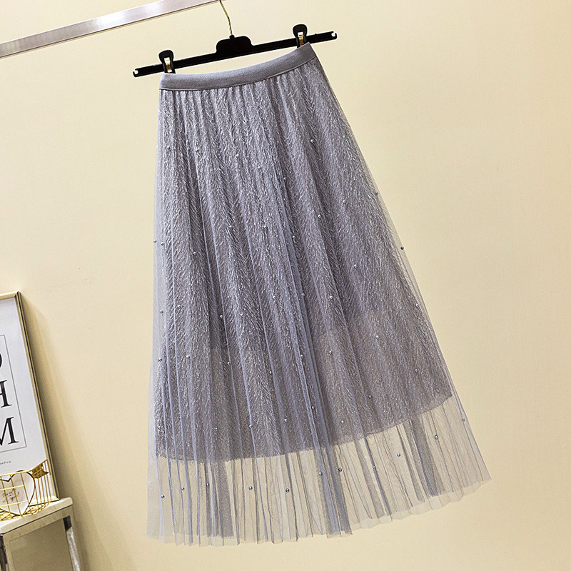 Net yarns Ins ultra-flavored half-body dress Autumn Winter Women in Korean version Long version a word long dress High waist conspicuated slim plexeback dress