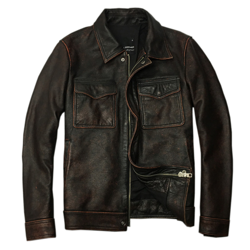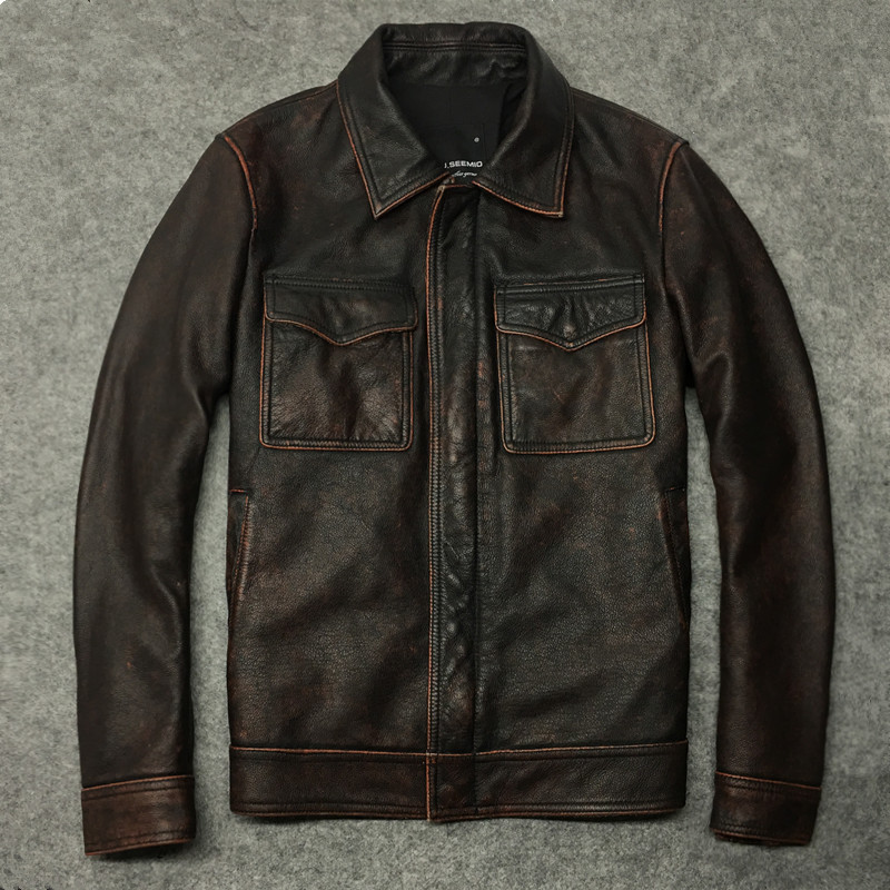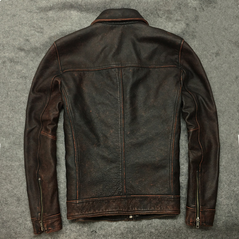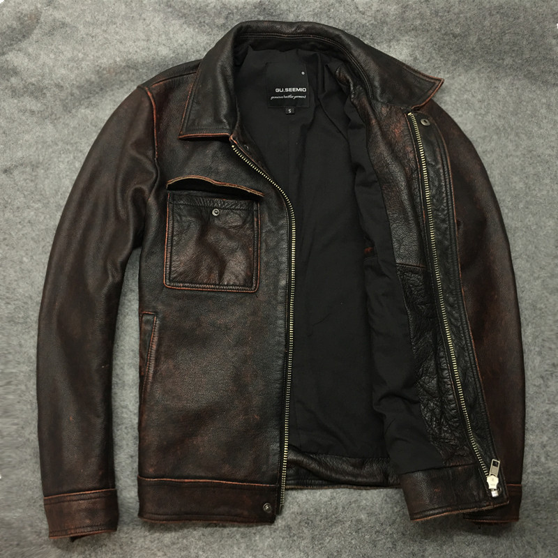 Retro leather jacket man made old head layer of cow leather stone grinding genuine leather leather collar to be covered with short leather jacket pure cow leather