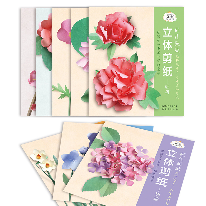 Miguang handmade paper children's three-dimensional handmade paper-cut flowers blossoming three-dimensional paper-cut hardcover DIY handmade material bag puzzle interesting origami table decoration set