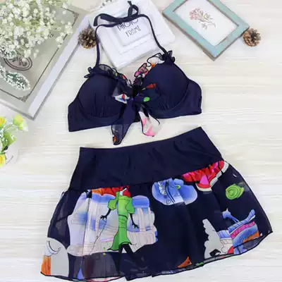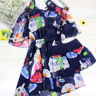 Large size swimsuit female fat mm thin sexy student Korean bikini hot spring swimsuit three-piece two-piece skirt
