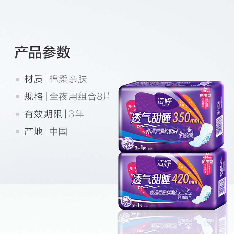 Glint cotton soft sanitary cotton Aunt towel breathable sweet sleeping night with combined 350mm4 sheet 420mm4 sheet of 8 pieces