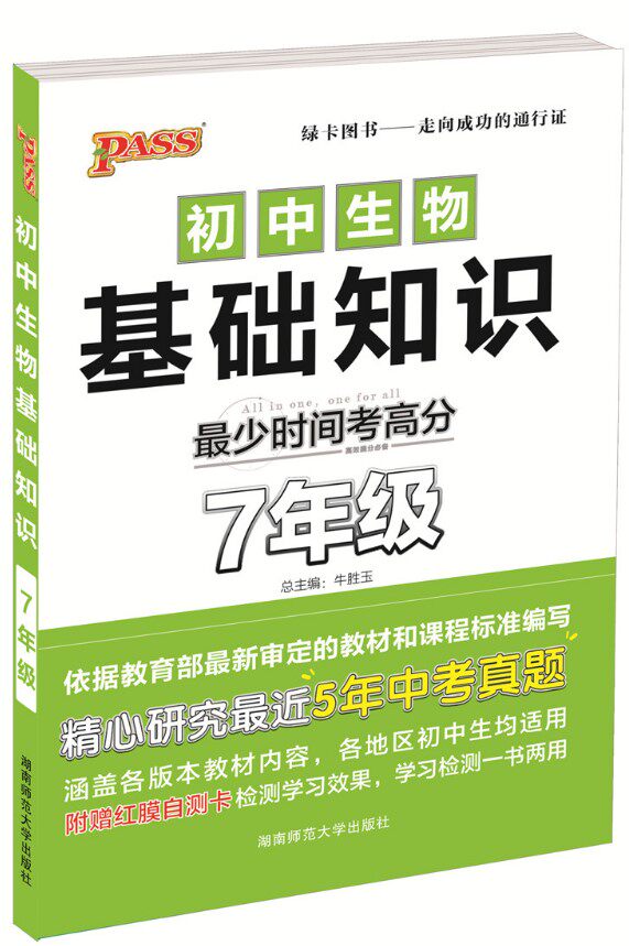 PASS Green Card Book Full Seventh Grade Basics Junior High School Biography Pocket Book 7 Grade Knowledge Recitation Seminar Review Coaching Knowledge Handbook in the Test