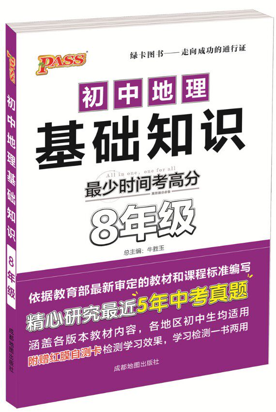 PASS green card book full set of 2 8th grade basic knowledge junior high school biogeography pocket book 8th grade knowledge recitation examination general review counseling Knowledge Manual High School Entrance Examination real questions Palm