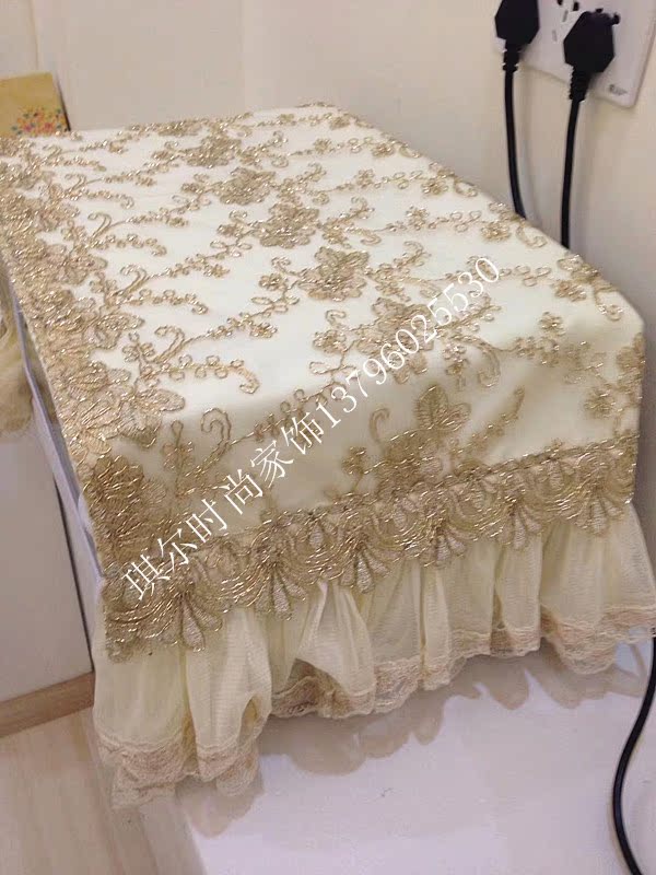 Lace cloth art gold beige European style Chinese luxurious microwave dust cover anti-smoke decorative curtain