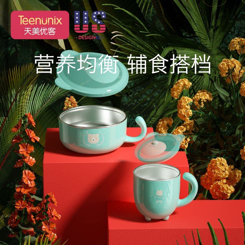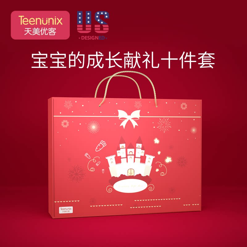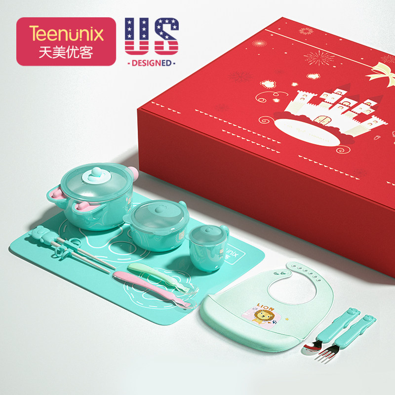 Adorable rabbit tableware ten-piece gift box Lotus lotus powder Adorable Bear tableware ten-piece gift box Morning mist green Ocean series tableware ten-piece Chinese red