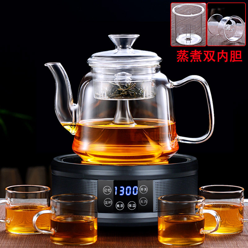 Black Crystal Furnace Cooking Tea Suit Steam Glass Burning Water Teapot Kung Fu White Tea Automatic Tea Steaming Tea Machine Cooking Tea Stove