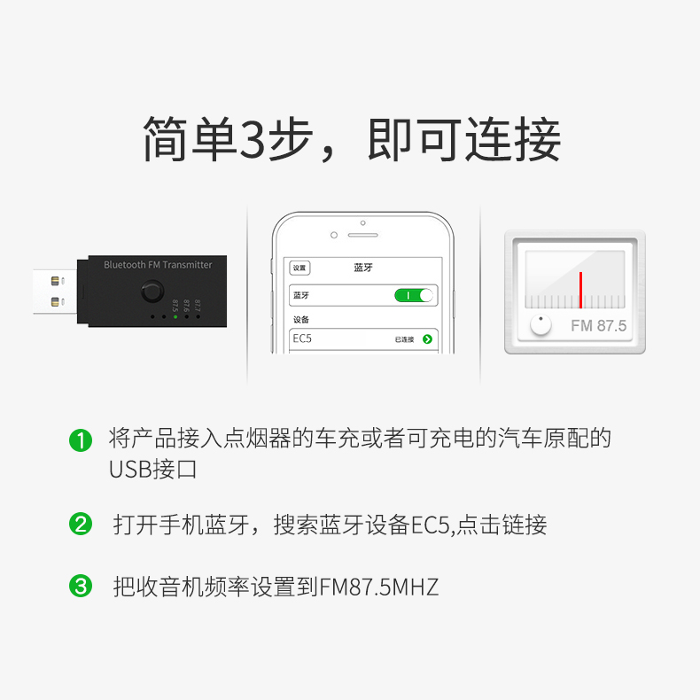 On-board AUX Bluetooth receiver MP3 player FM transmitter FM Audio converter 5 0 Bluetooth USB hands-free call phone Cigarette Smoke car Music Bluetooth stick connected mobile phone