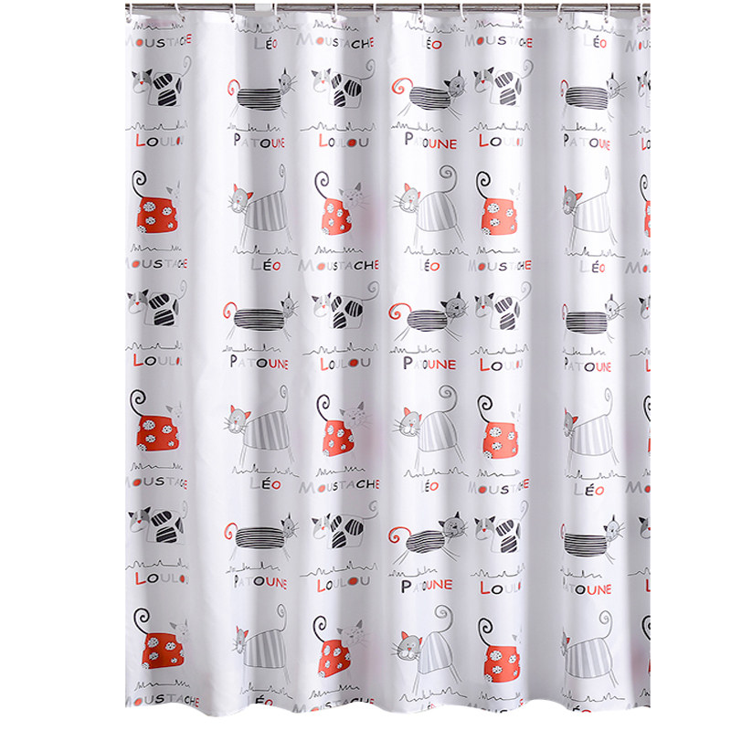 Cute shower curtain waterproof curtain anti-mildew thickened polyester cloth bathroom curtain hanging curtain bathroom shower curtain cartoon kitten