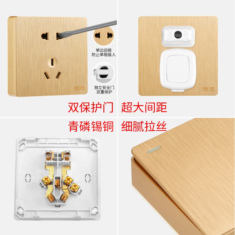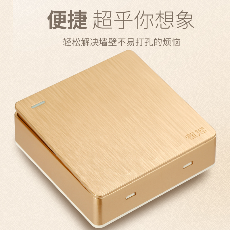 Open-mounted switch socket Single open single control single ultra-thin household power supply wall switch Champagne gold drawing