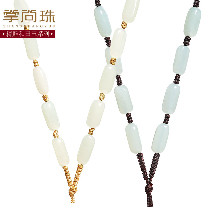 Xinjiang Hetian Jade Necklace Men's and Women's White Jade Hetian Jade Chain Bucket Bead Hanging Rope Hanging