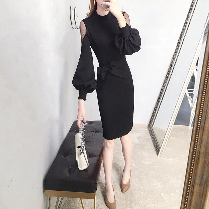 Spring Autumn Season Bag Gluteal Dress 2022 New Ladies' Temperament Cashew to lean on the bottom Hunderwind Little Black Skirt Children