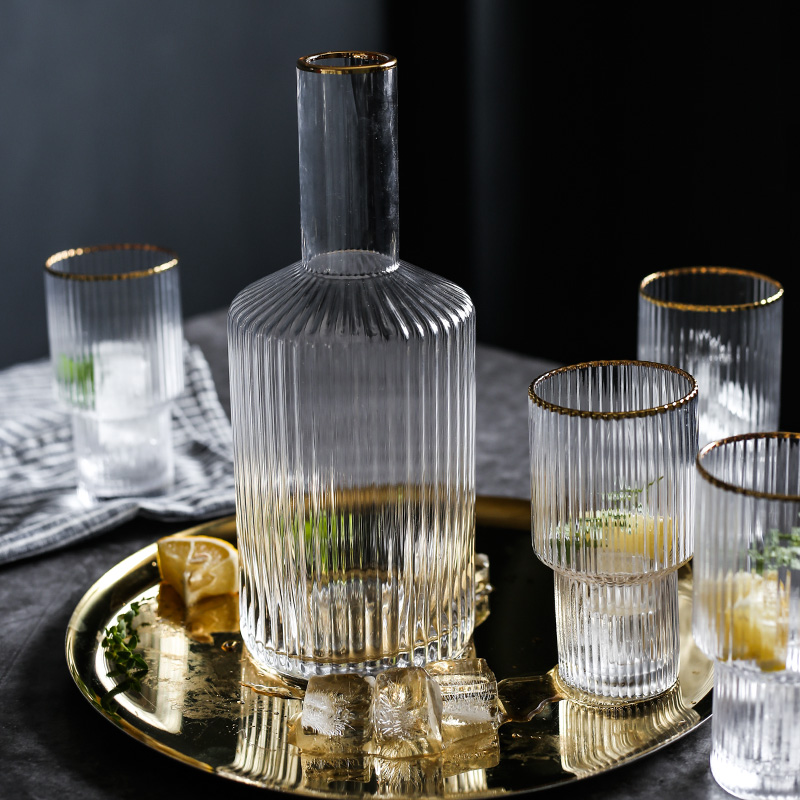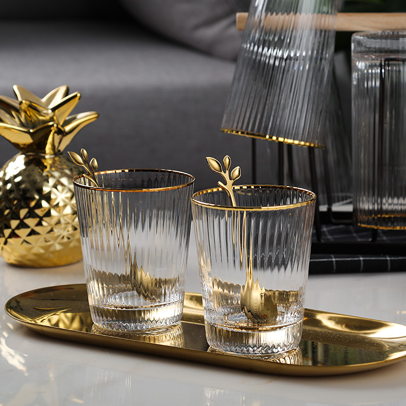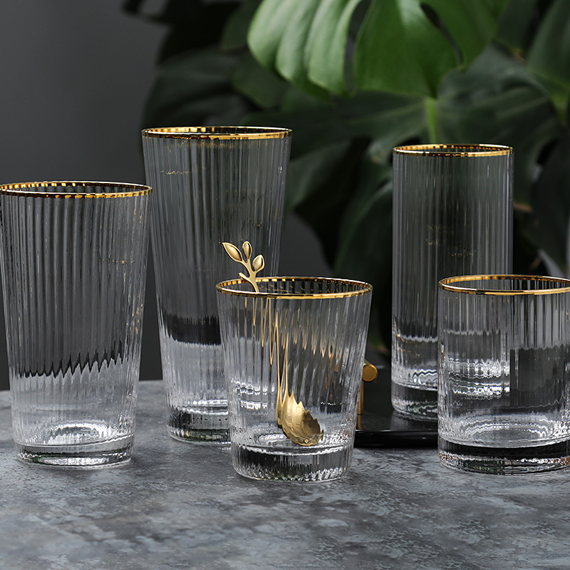 Suochu ins wind golden edge vertical striped glass water cup Japanese striped household tea cup large capacity high value cup