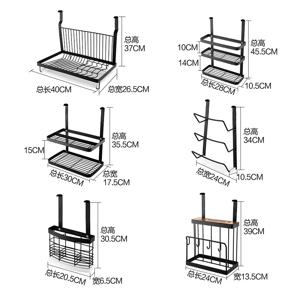 Elegant black knife plate rack (hanging bar length 25cm) elegant black chopsticks cage (hanging bar length 20cm) elegant black pot lid holder (hanging bar length 25cm) elegant black double-layer seasoning jar rack