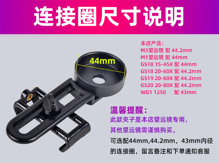 Derui telescope mobile phone camera clip bracket connector Telescope fixed clip 44mm ring