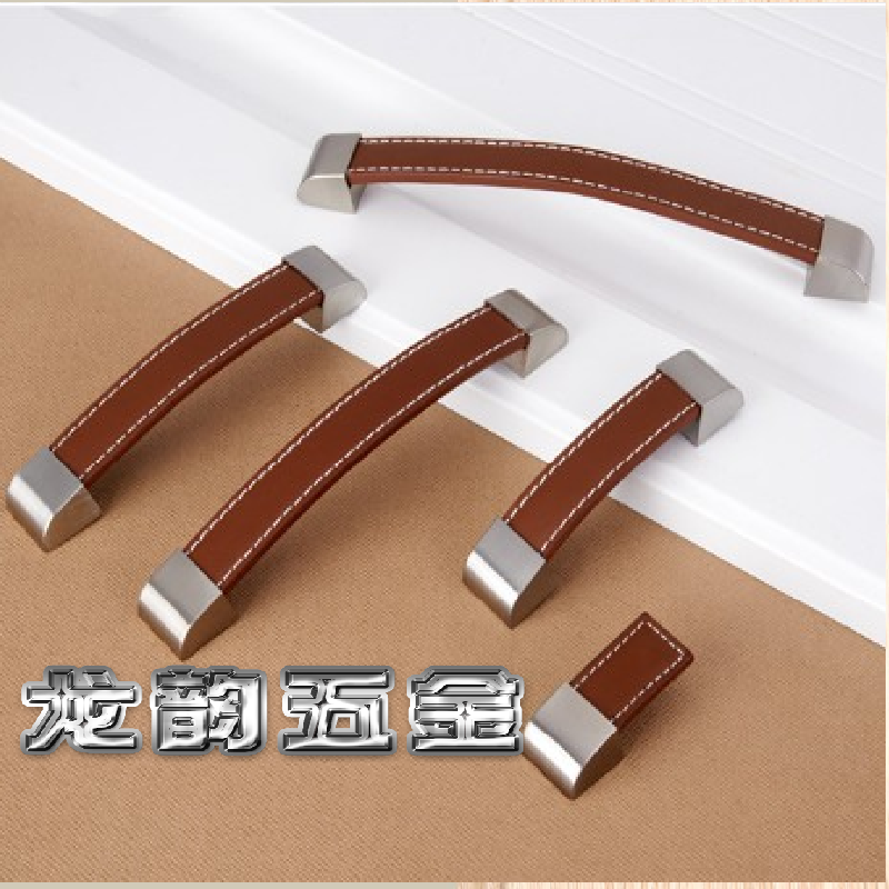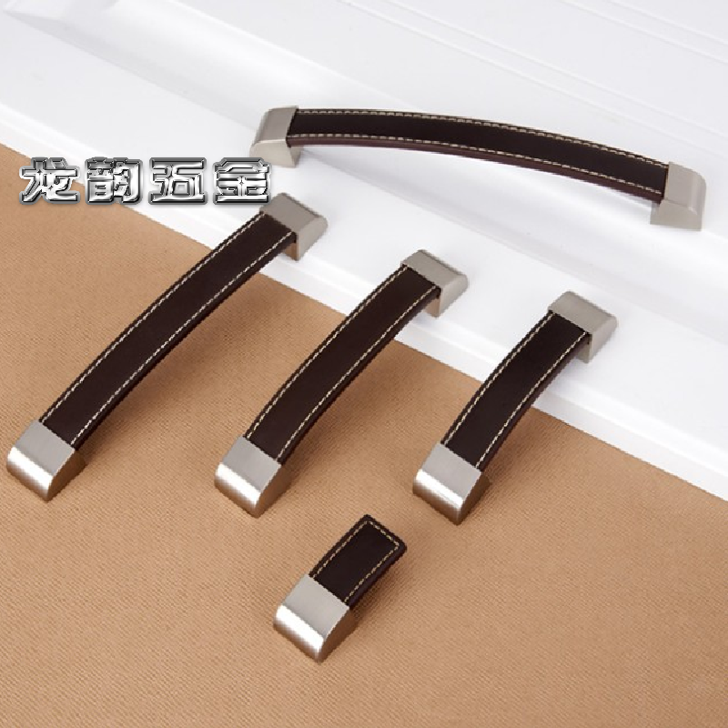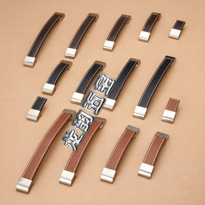 Chinese style cabinet door handle brown soft leather handle leather handle European style wine cabinet drawers pull handle big wardrobe door handle-Taobao