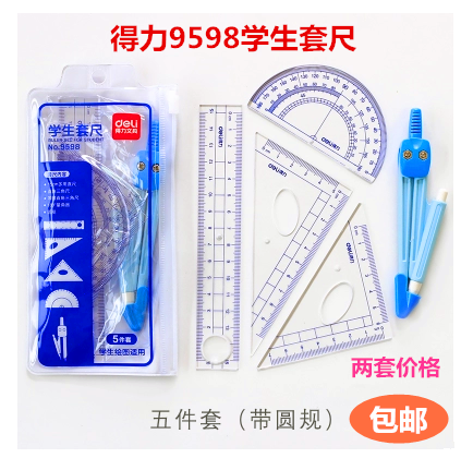Save more power 72003 student set ruler four-piece set 9598 (5 pieces)Garden gauge set ruler Multi-function transparent ruler Triangle ruler protractor drawing set ruler exam 2 pack price