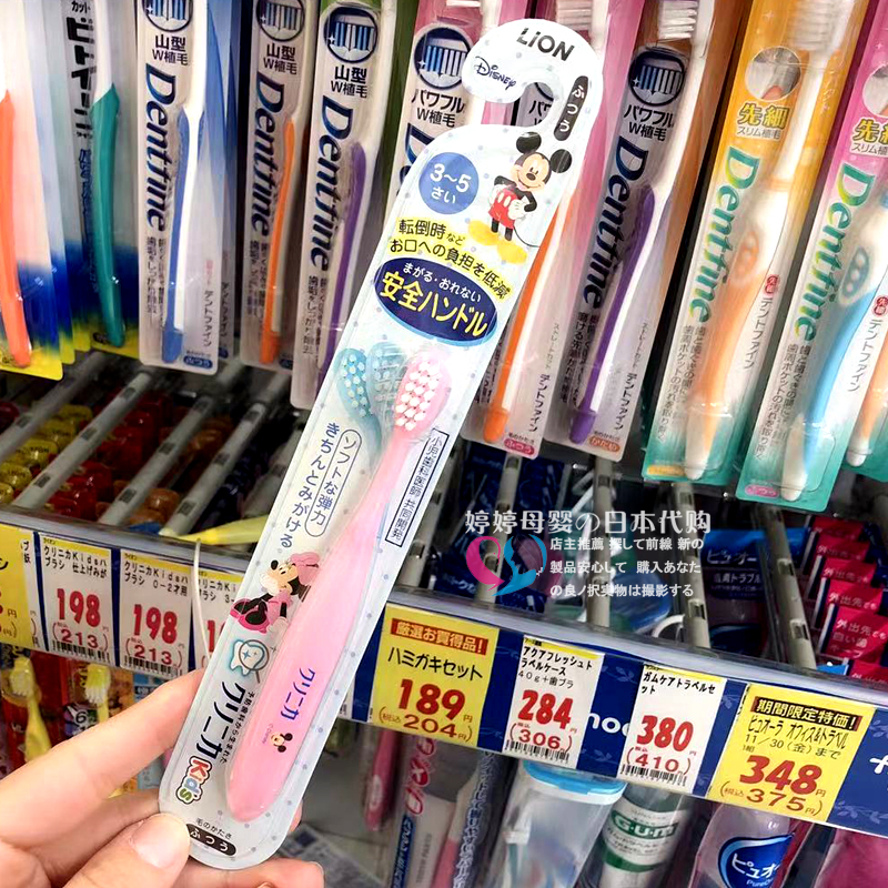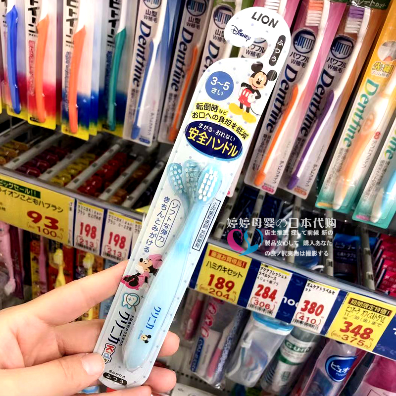 Japan Lion Lion Mickey Elastic rubber handle Small baby training brush Children's toothbrush soft and bendable