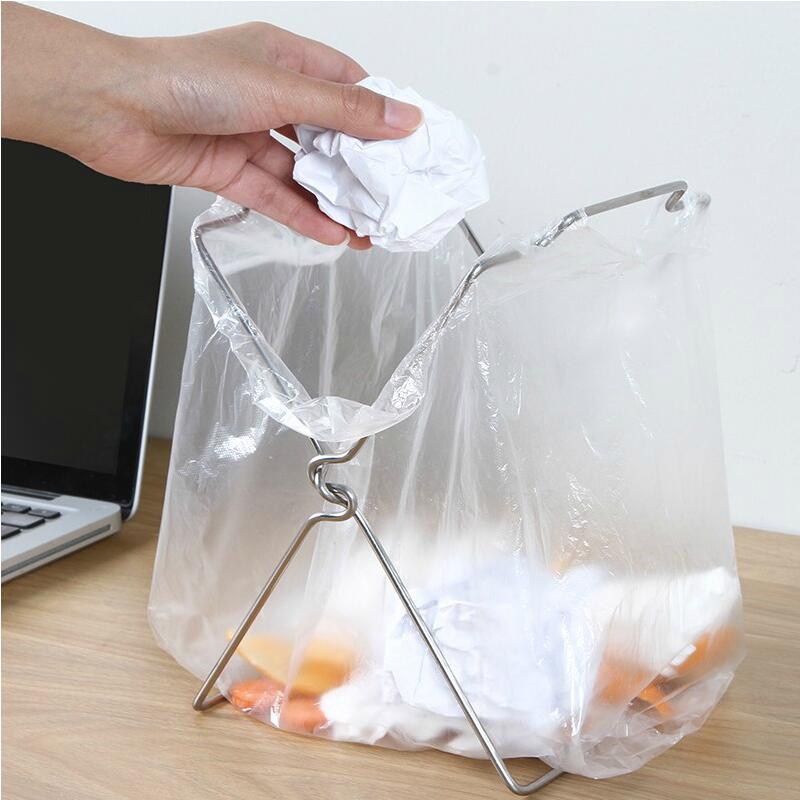 Stainless steel garbage rack rag rack foldable kitchen storage rack plastic bag rack tote bag trash can holder