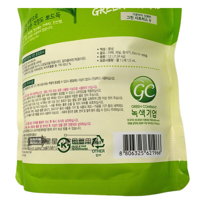 South Korea imported CJLION king green tea dishwashing detergent to oil stains easy to rinse fruit and vegetable tableware detergent