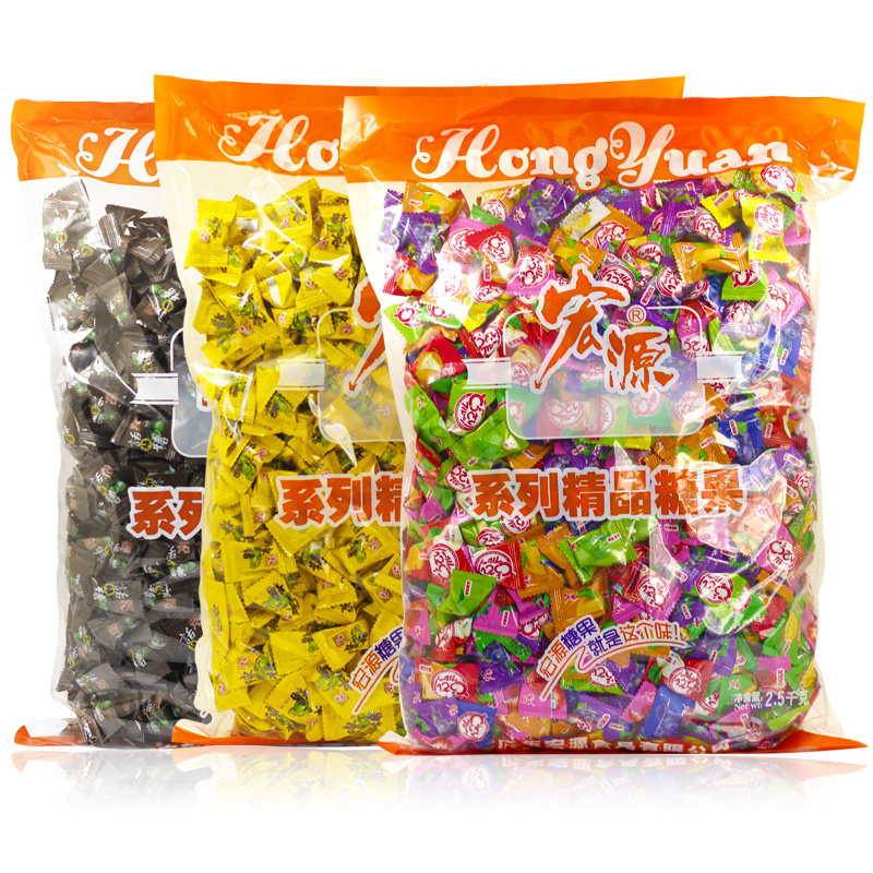 Hongyuan tangerine peel sugar plum assorted sugar 5 kg 4 bags of fruit hard candy 20 kg whole box wedding happy candy bulk wholesale