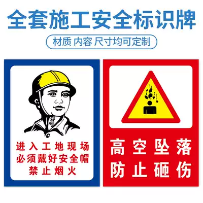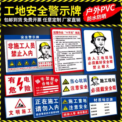 Site safety signs Construction safety signs Warning signs Mechanical hazards Pay attention to safety Wear helmets warning signs Outdoor building construction site warning signs design customization