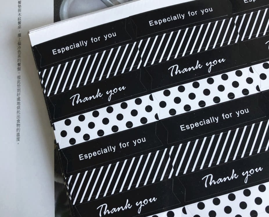 Black thanks to Thank You Strip Dot Seal for baking bag biscuit gift box diy decorative sticker