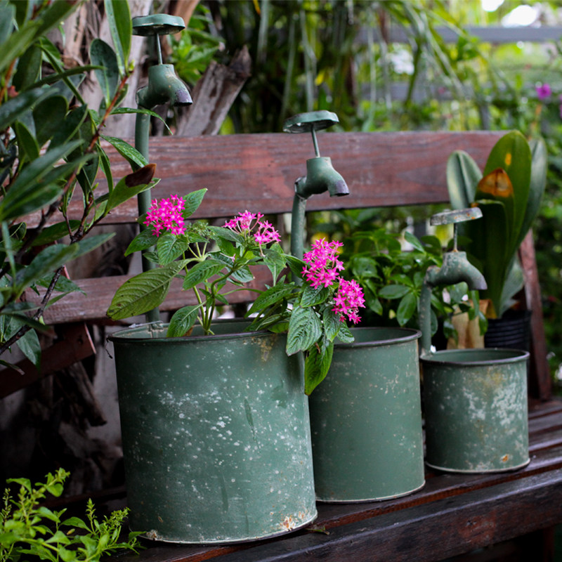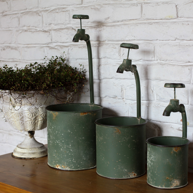 Foreign Trade Garden Grocery - Retro made old army green tap decorated cylindrical flower pot home garden creative flower