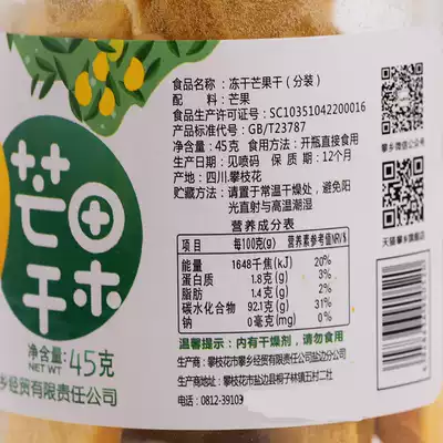 Pan Township freeze-dried mango 45g jar Panzhihua mango Kate crispy fruit and vegetable leisure snack office gift
