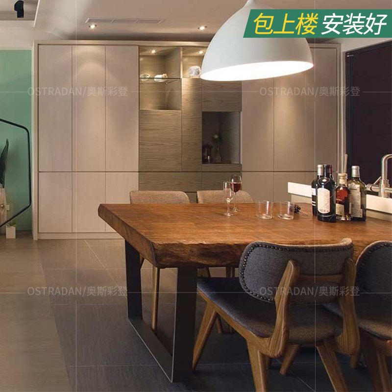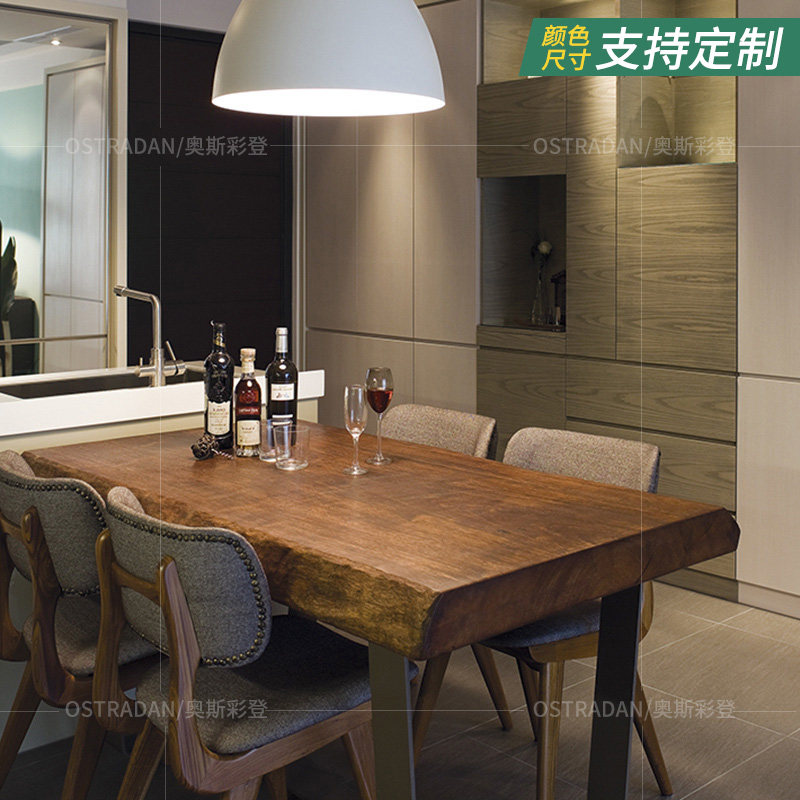 Solid wood wood thickened large plate dining table and chair combination Small household American rectangular wood dining table Dining table