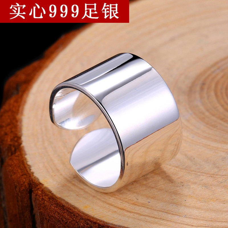 Luotai old silversmith 999 sterling silver opening ring couple personality male ring female Korean version of the glossy creative wide engraving