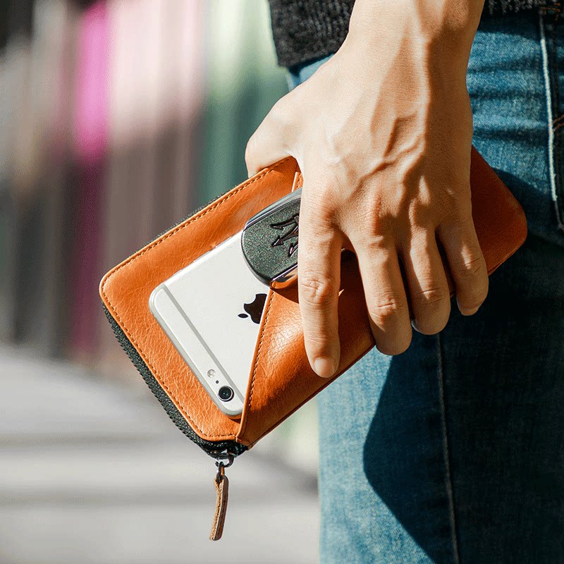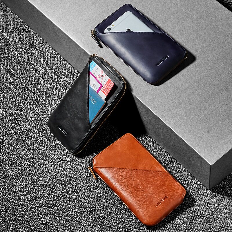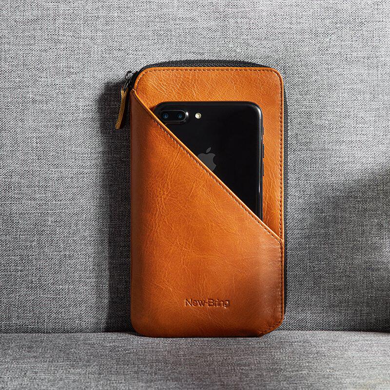 Niu Bing Genuine Leather Passport Bag Long Handbag Zipper Handbag Passport Phone Wallet Wallet Men