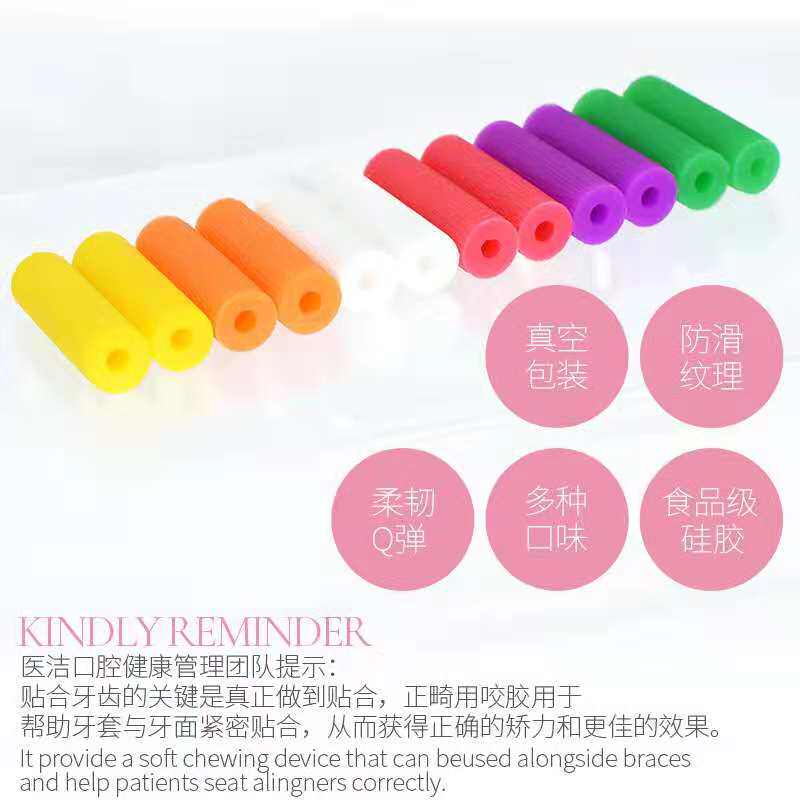 White (original) send cleaning tablets 1 pink (strawberry) to clean tablets 1 piece of orange (orange) to clean sheet 1 piece of green (mint) to clean sheet 1 piece of purple (grape taste) to clear