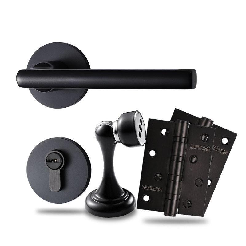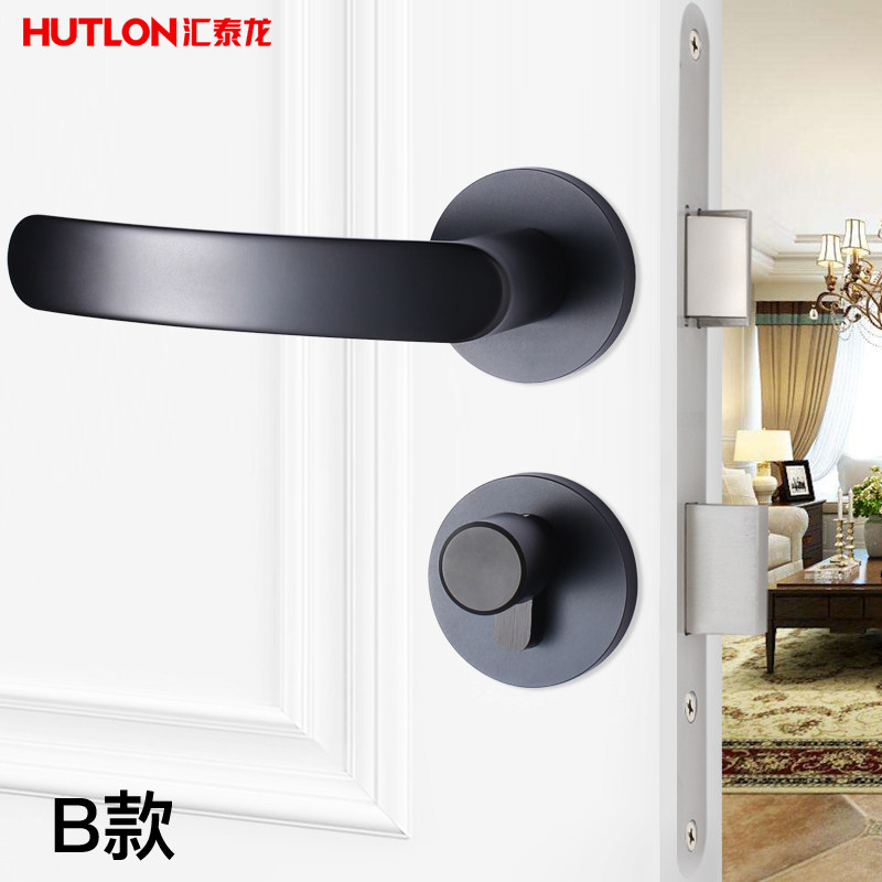 Huitai Dragon Door Lock Indoor Bedroom Door Lock Three Sets Household Brief About Silent Solid Wood Door Handle Black Lock