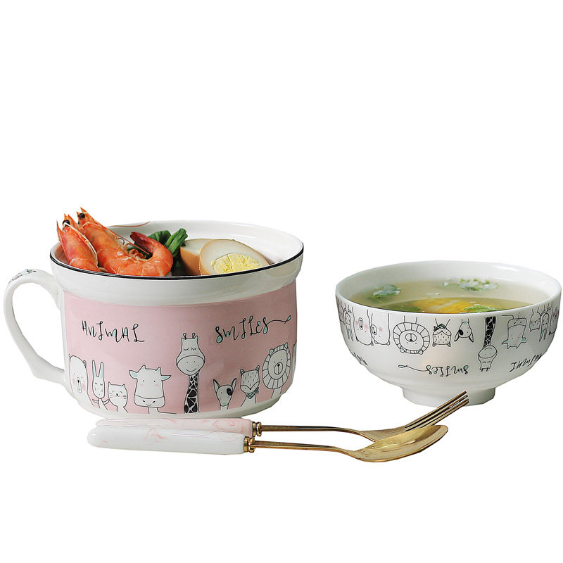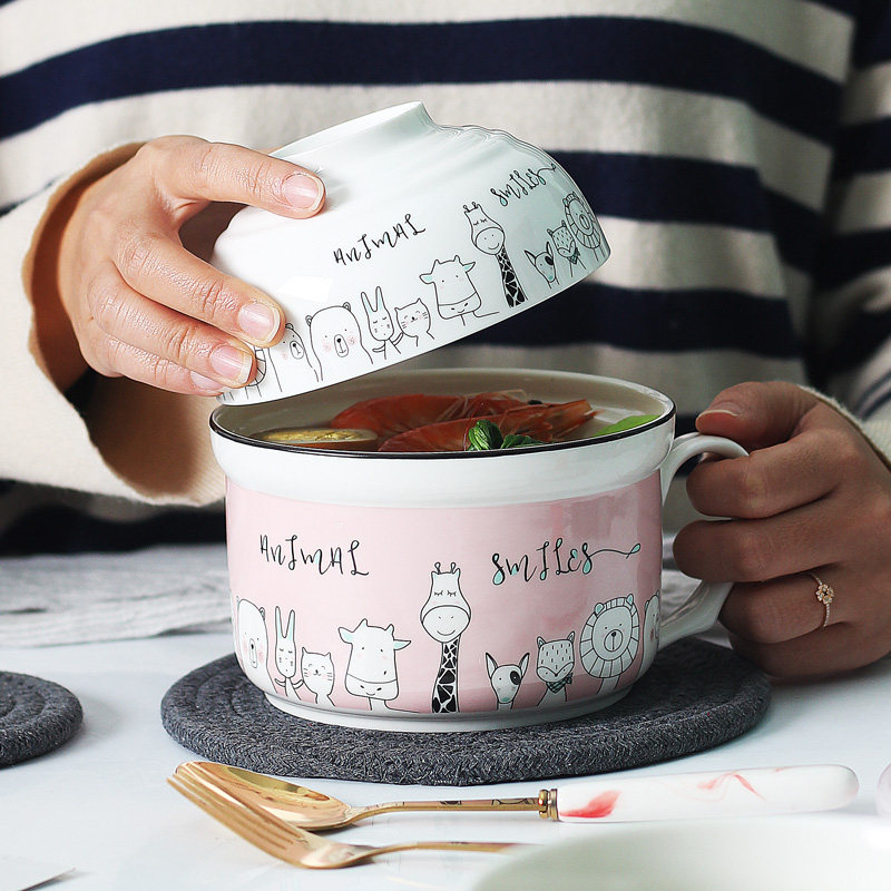 Nordic ins Bento lunch box Breakfast cup Microwave oven with lid to put the dormitory ceramic fresh porridge soup bowl into the instant noodle cup bowl