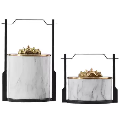 New Chinese style light luxury storage box Metal marble storage tank Living room entrance model room Hotel soft decoration