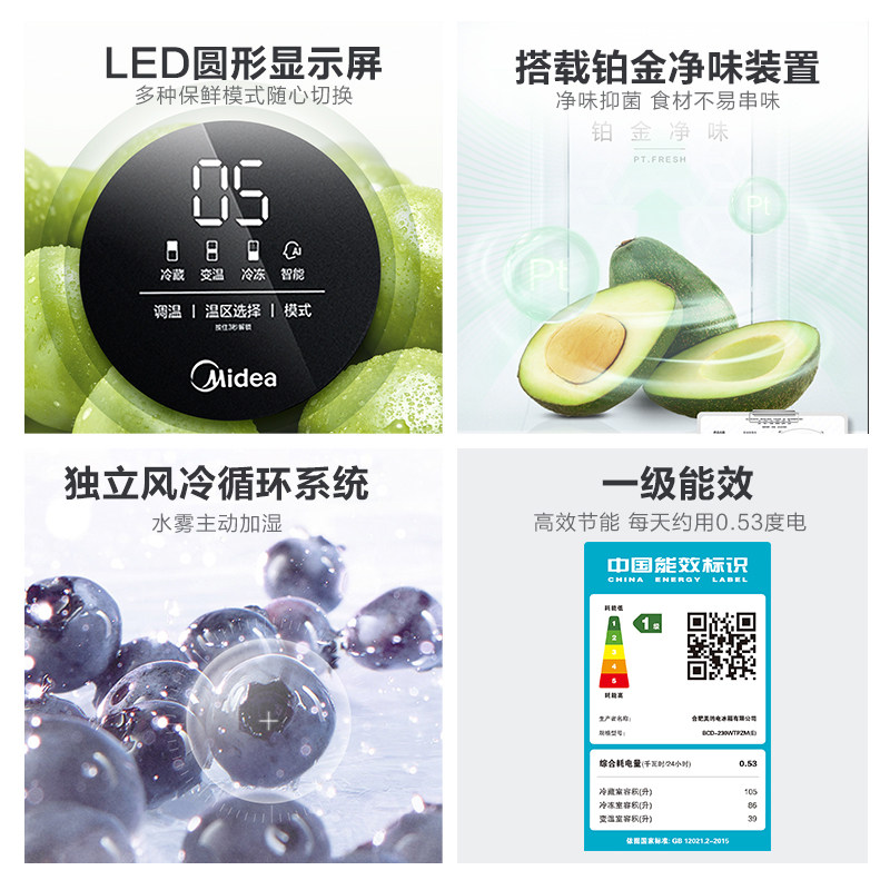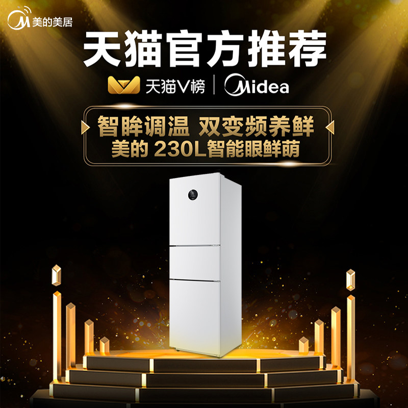Beauty fridge 230L three-door frequency conversion level energy efficiency No cream Small home white three-door refrigerator Official