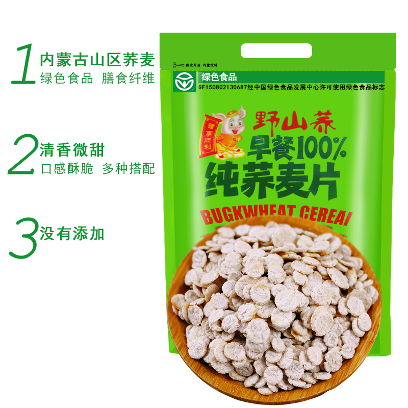 Wild buckwheat pure buckwheat flakes 500g cooked flakes nutritious breakfast ready-to-eat brewed flakes Inner Mongolia green food