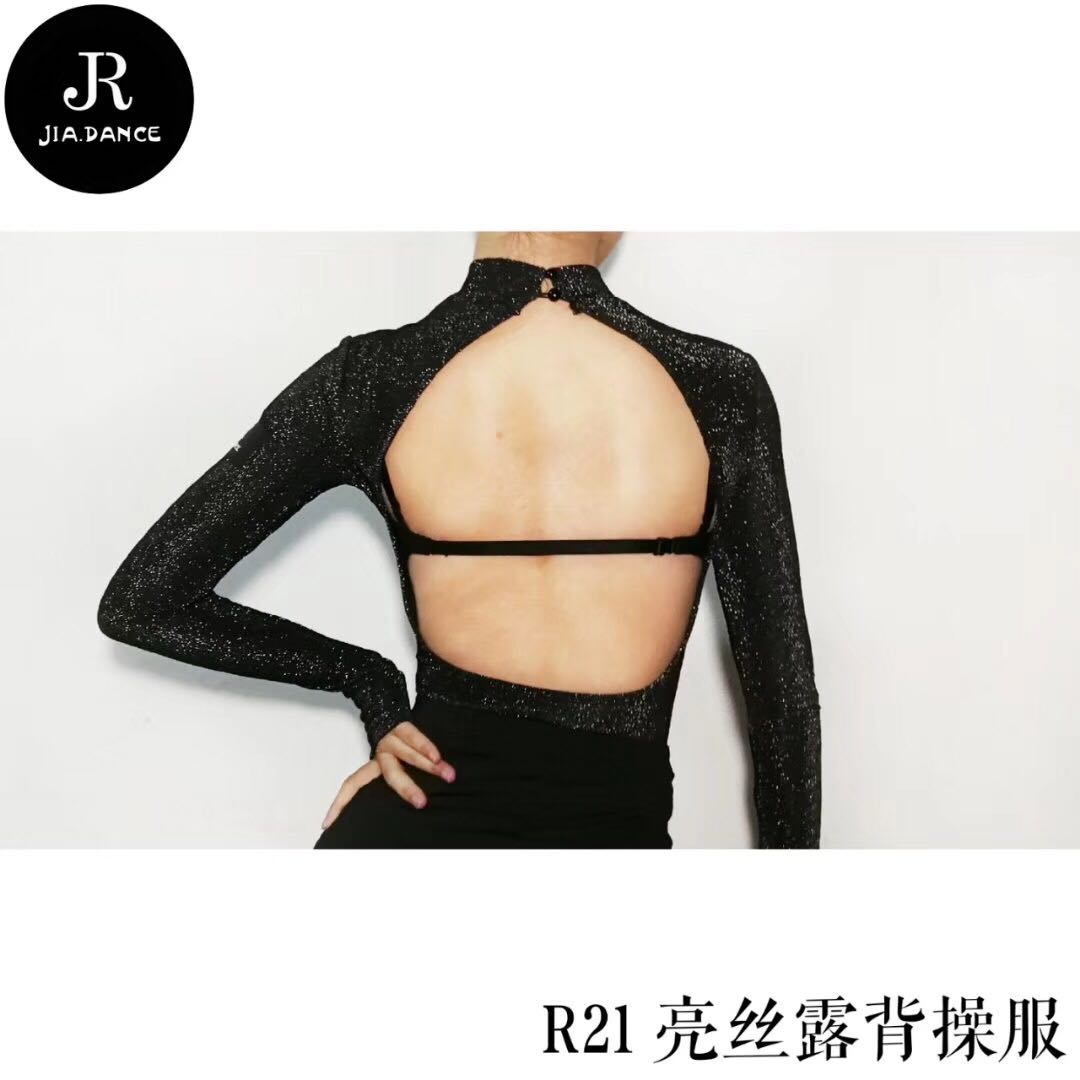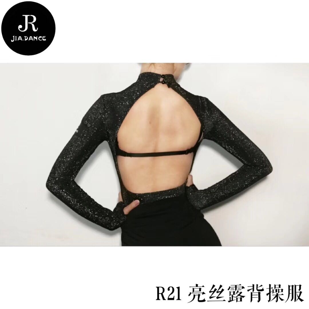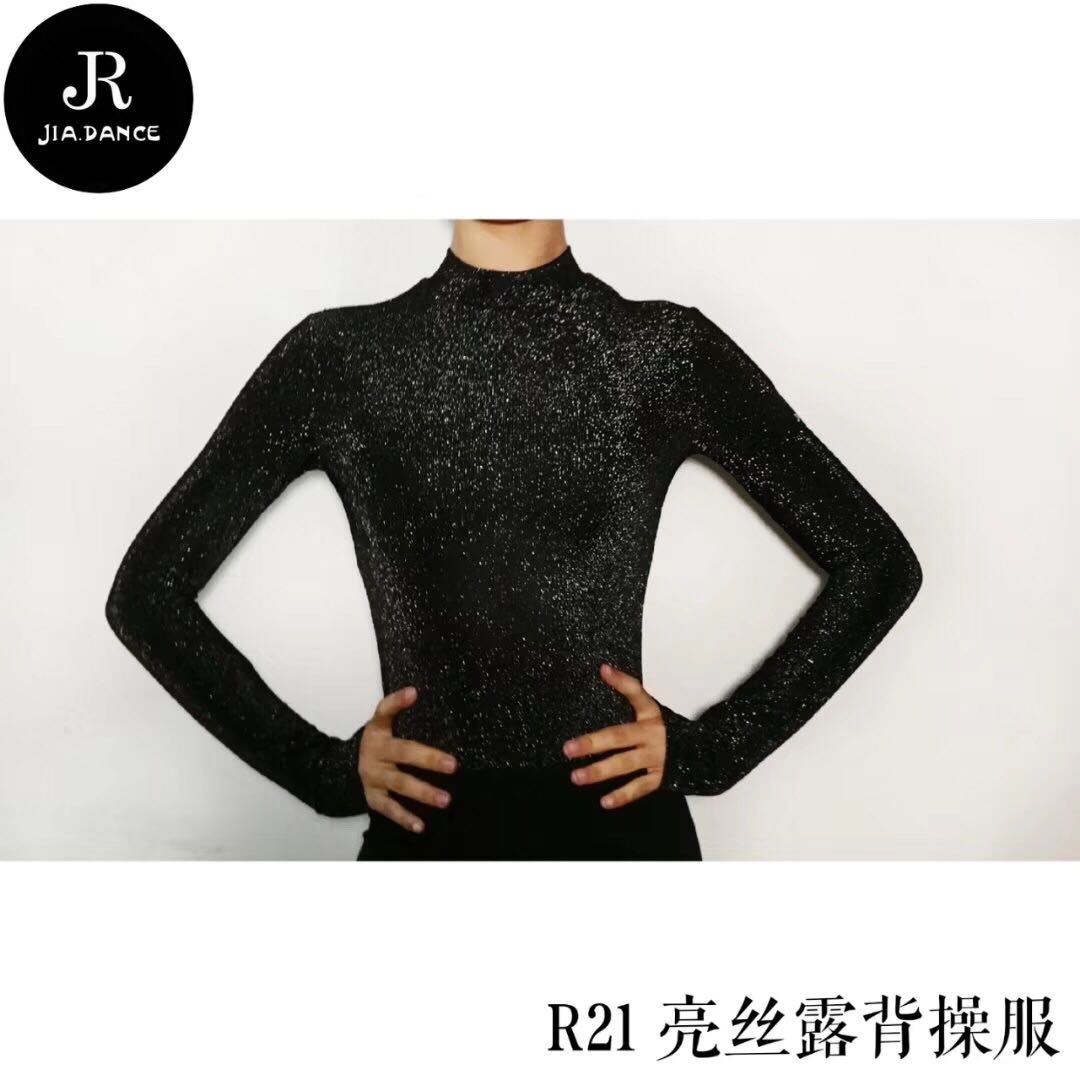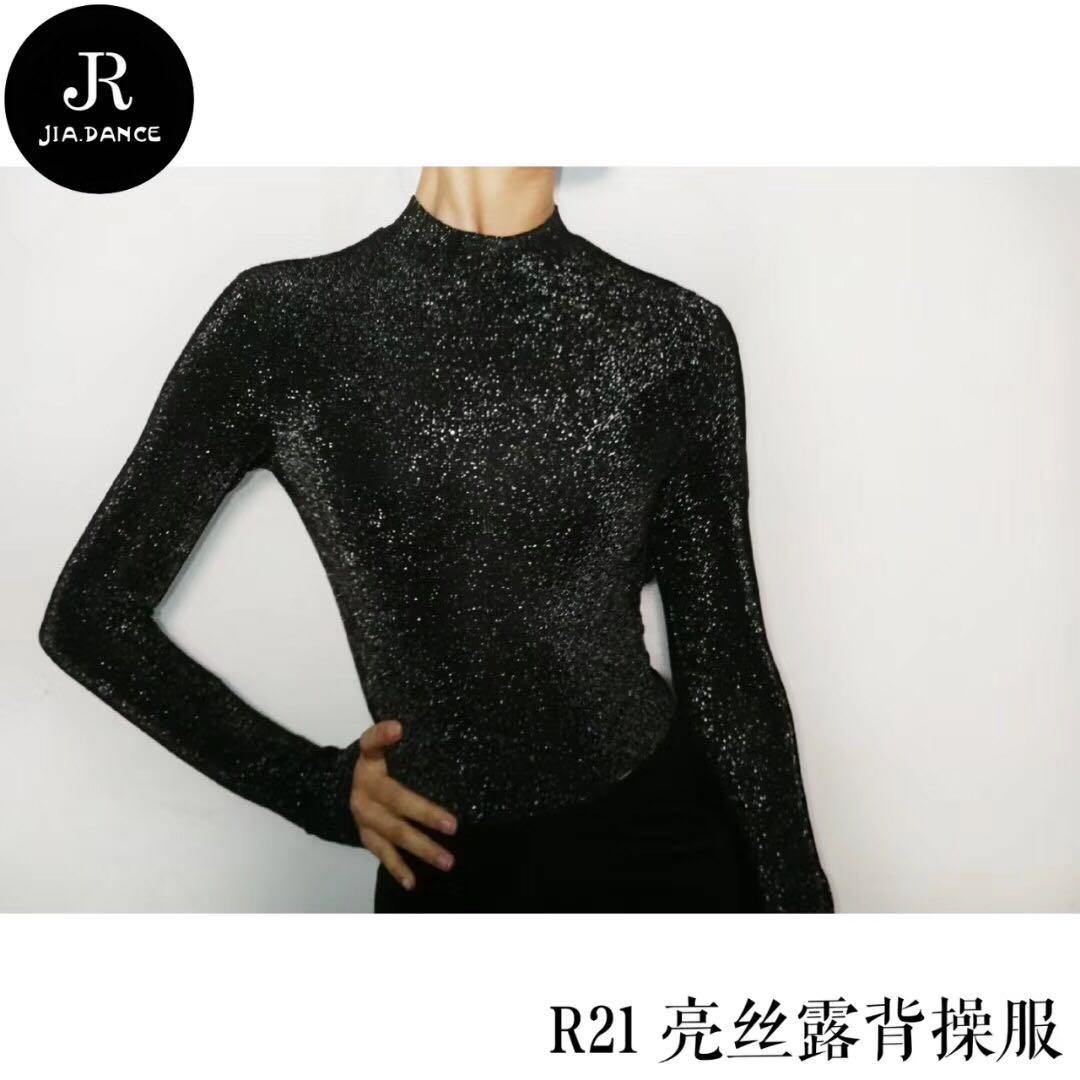 SOFTCHEN JIA DANCE Latin MODERN DANCER AUTUMN and WINTER HIGH collar LONG SLEEVE BRIGHT silk HALTER JUMPSUIT