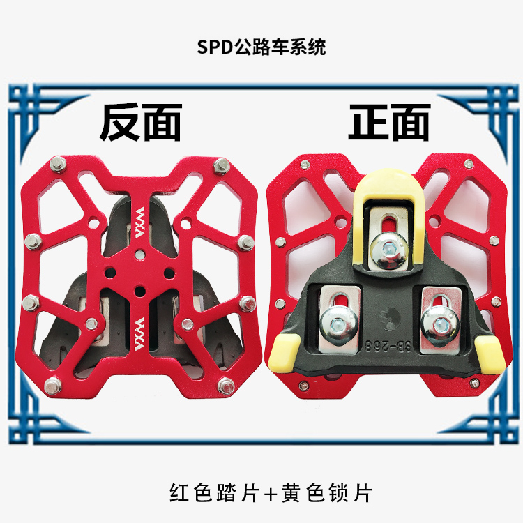 Aluminum alloy-Pedal-Black Aluminum alloy-Pedal-Red road bike 6 degree lock plate-Red road bike 6 degree lock plate-Yellow road bike SPD system Black-yellow road bike SPD system